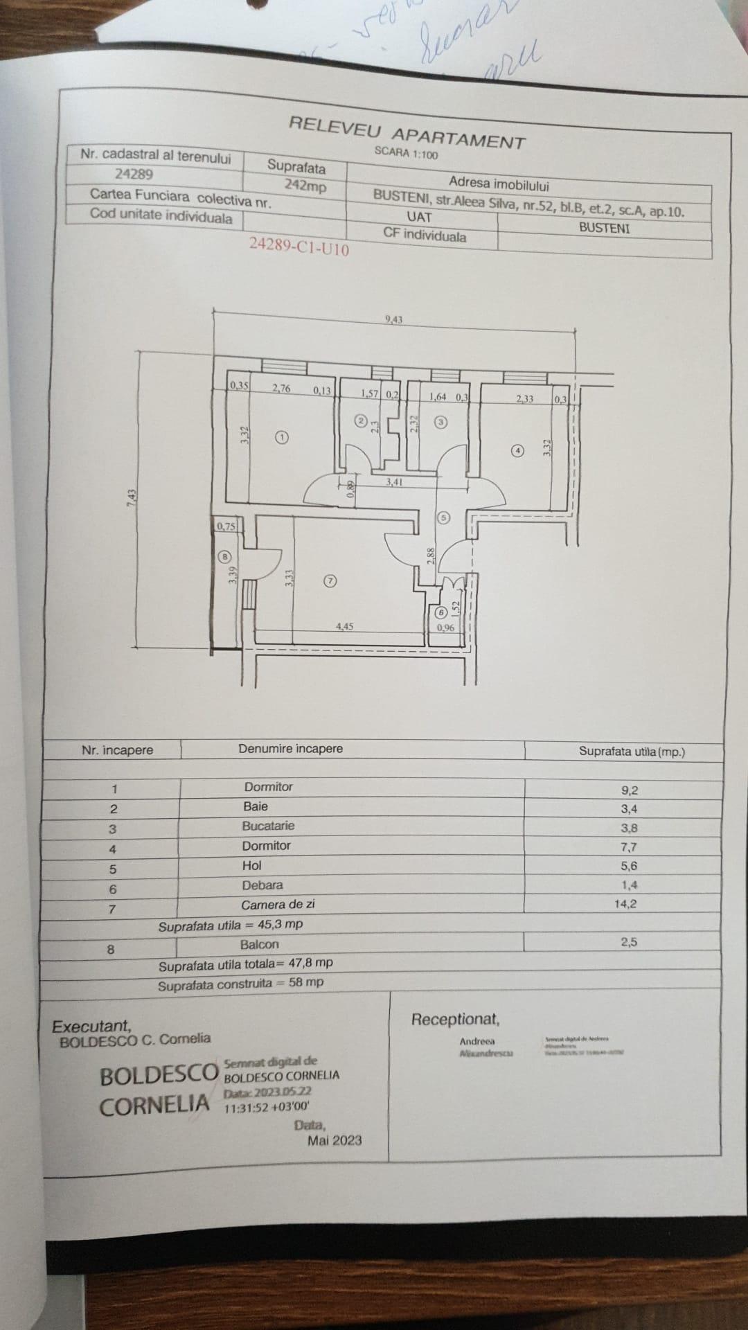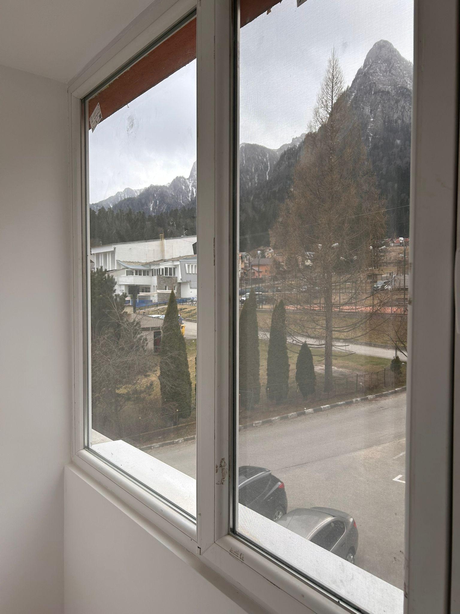De vânzare apartament 3 camere, situat în Bușteni, Str. Aleea Silva, etaj 2 din 4, decomandat, confort 1, cu suprafață utilă de 47,8 mp și vedere panoramică către Crucea Caraiman și Munții Bucegi.