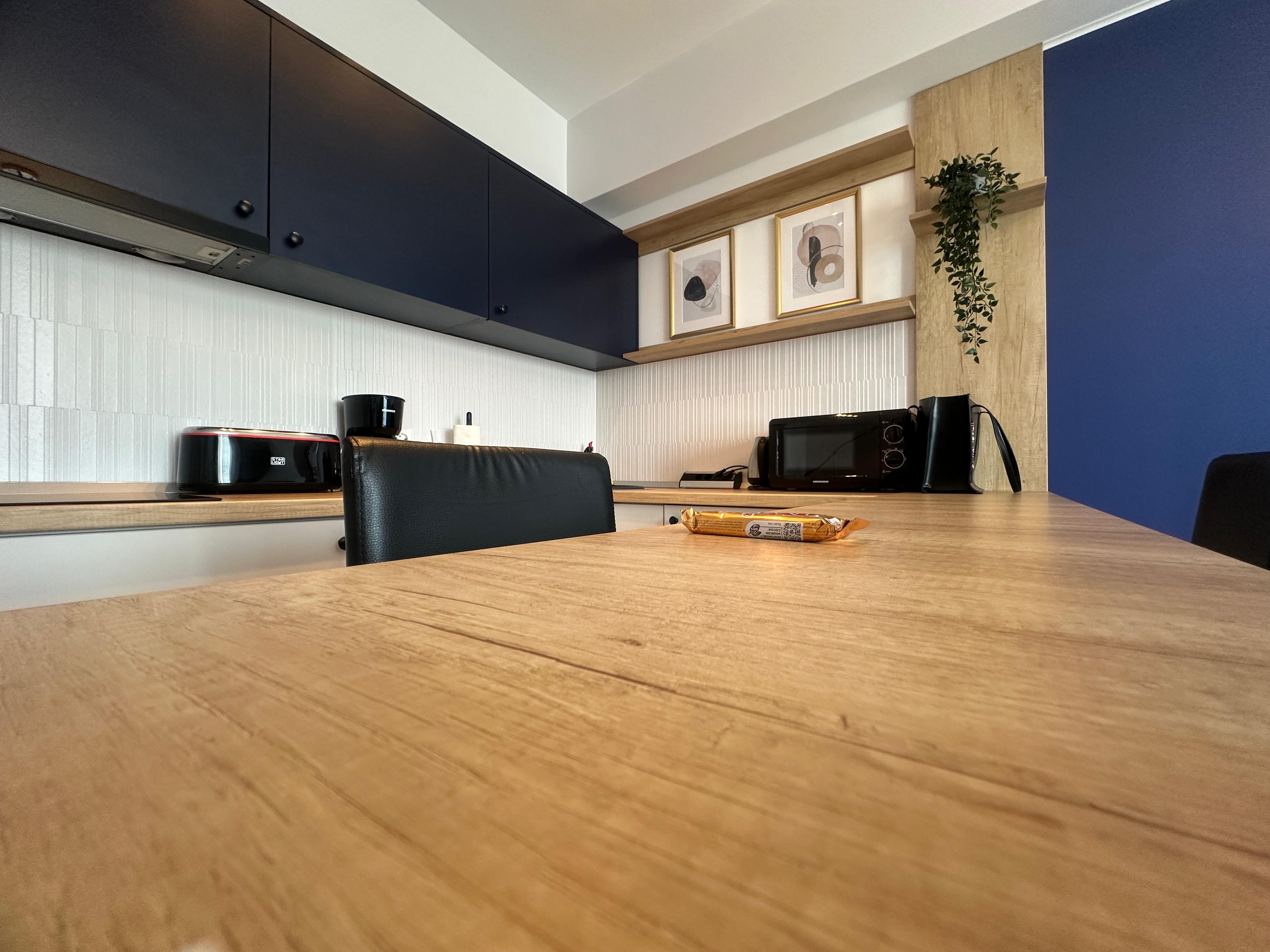 • Bucatarie Open Space complet utilata: plita electrica, cuptor cu microunde, cafetiera, masina de spalat